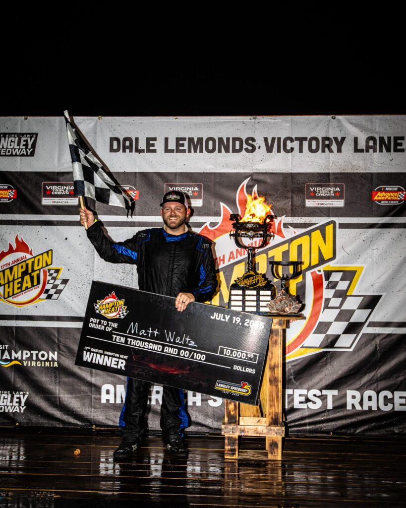 Matt Waltz entered Saturday’s Hampton Heat with redemption on his mind after he was disqualified from a second-place run at Virginia’s South Boston Speedway in the first leg of the 2025 Virginia Late Model Triple Crown.