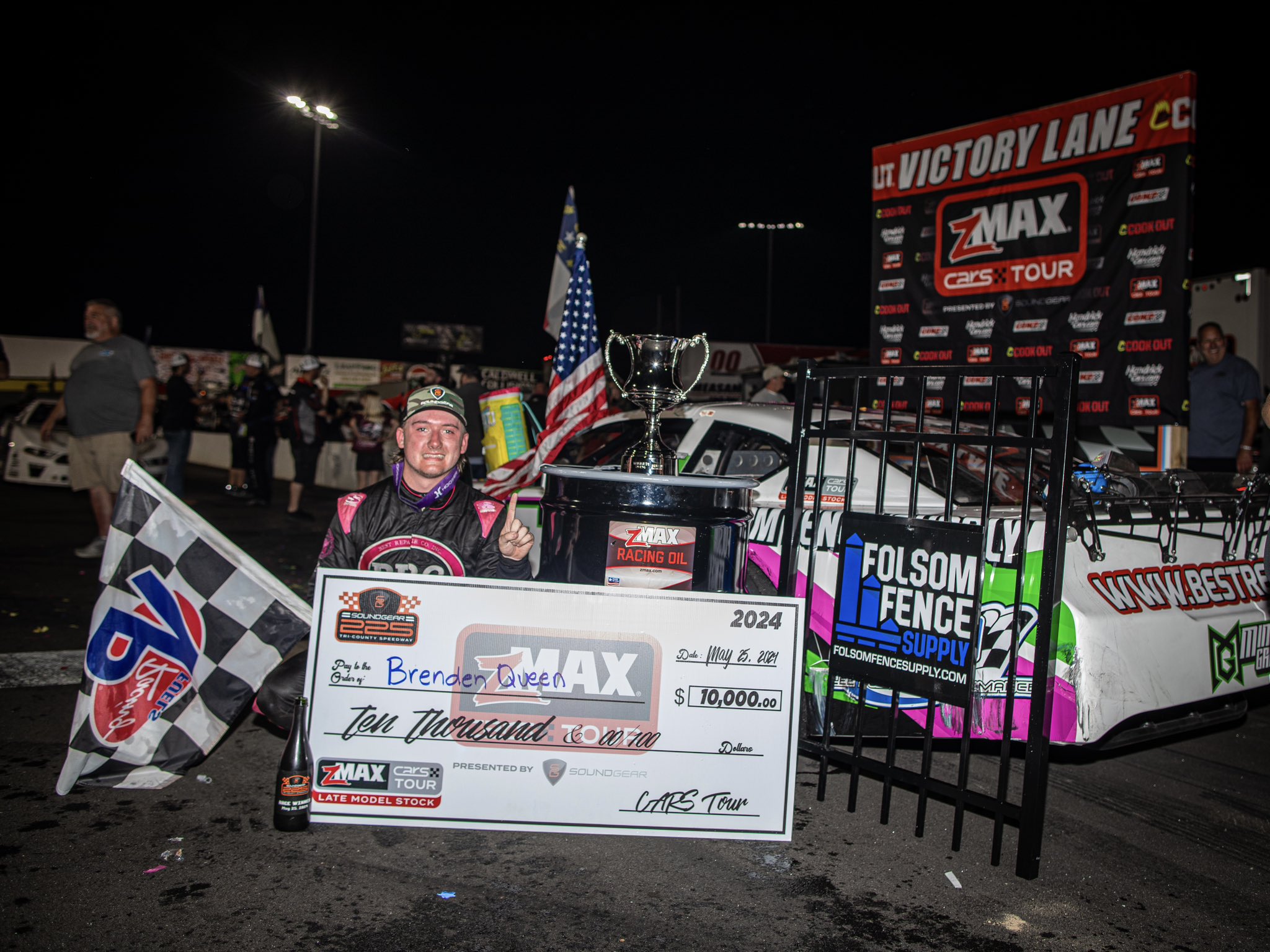Brenden Queen earned his first CARS Tour victory of 2024 in winning the Sound Gear 125 on Saturday night at Tri County Motor Speedway but a mechanical gremlin and Chase Burrow nearly conspired to take it away from him.