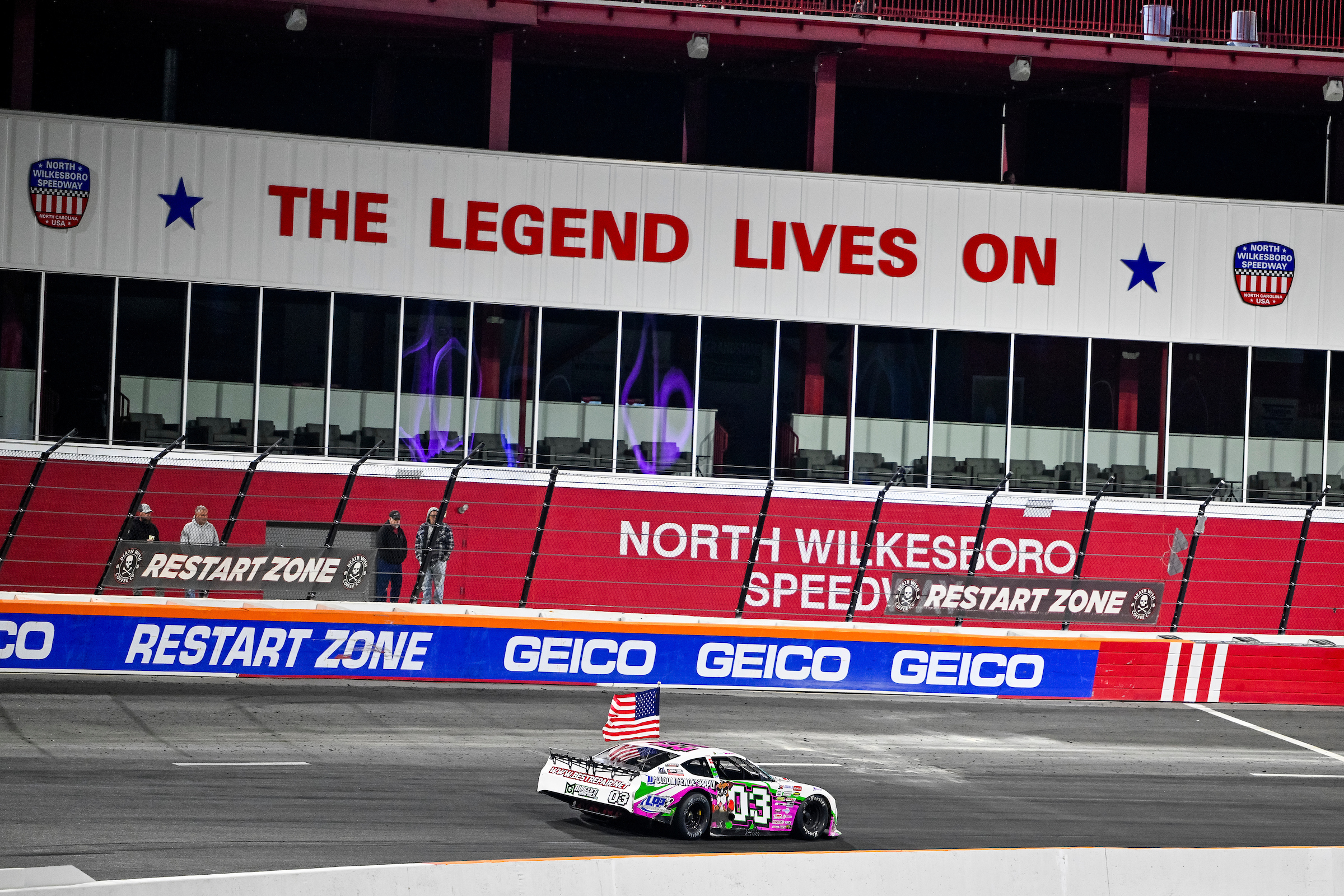 Jones threw a slider on Kvapil but got crossed over. Jones used the bumper and pulled even. Kvapil threw a slider right back. Ultimately, Jones threw one more slide, made it stick and drove away to the coolest victory lane of his career –the North Wilkesboro lift.