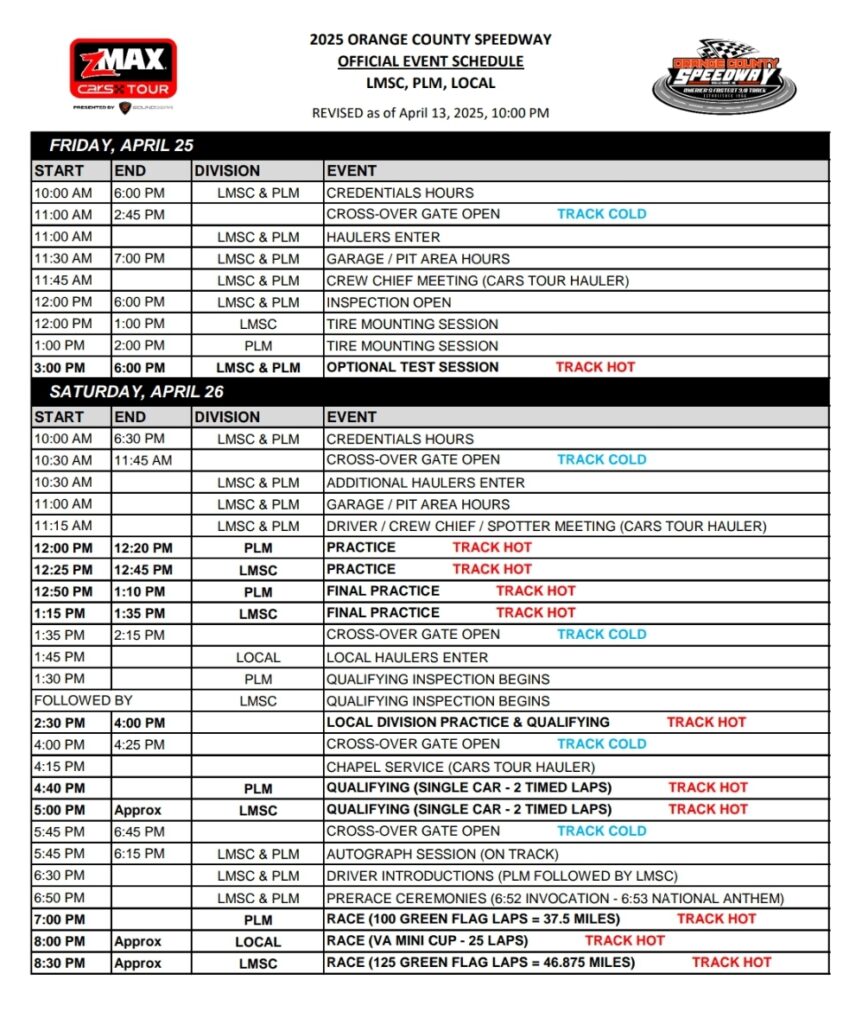 The next stop on the 2025 schedule for the zMAX CARS Tour is Orange County Speedway, a track that has long been a favorite amongst fans and competitors.