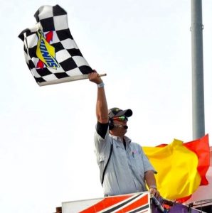 On his first night, Hickory was having a night of destruction demolition derby and one of the track’s announcers was unable work. Sherrill was already going to flag the event, so he was asked to pull double-duty.