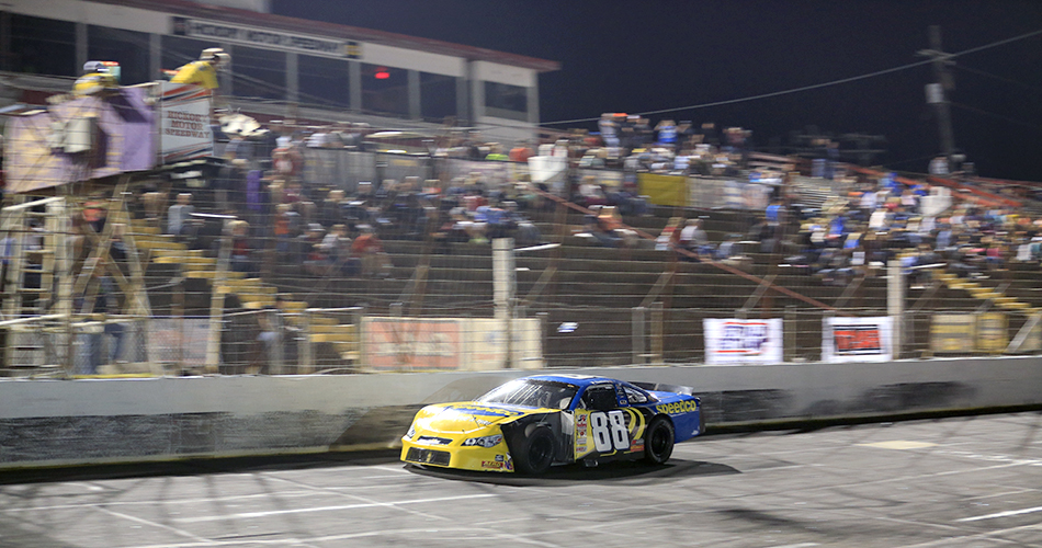 Several laps later, Jake Ruggles’ machine blew an engine, dropping oil all over the track.  Another red flag came out for an incident involving defending Hickory Motor Speedway champion Josh Berry and Justin Crider.