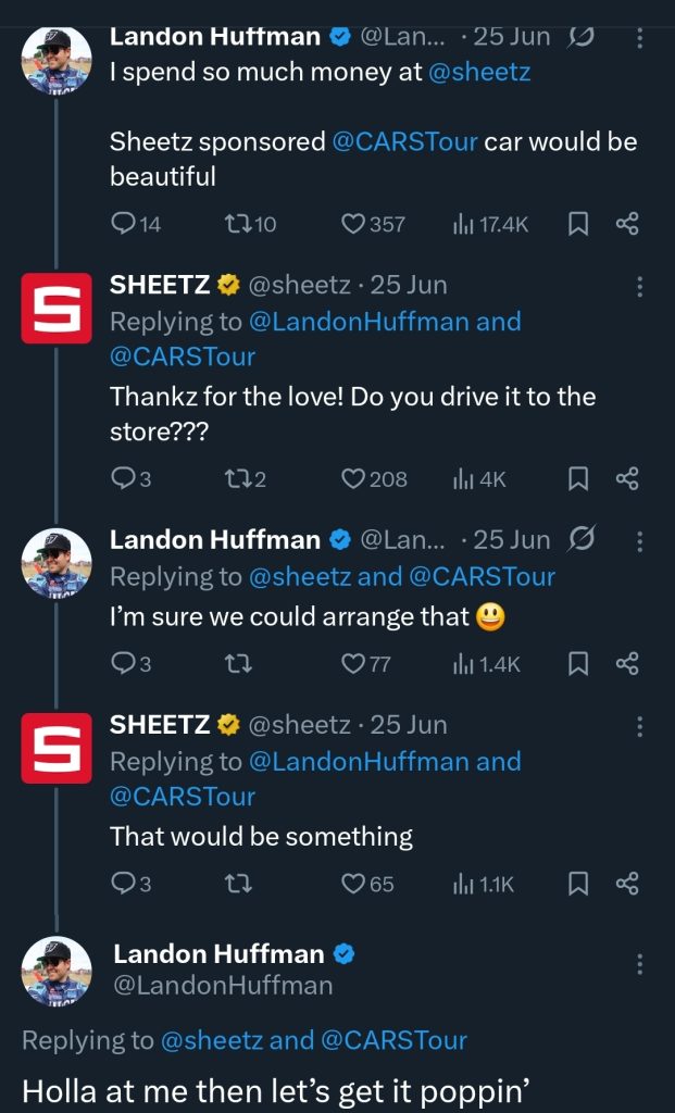 Sheetz and Late Model Stock racing are synonymous with each other so a partnership with a prominent driver makes all the sense in the world.