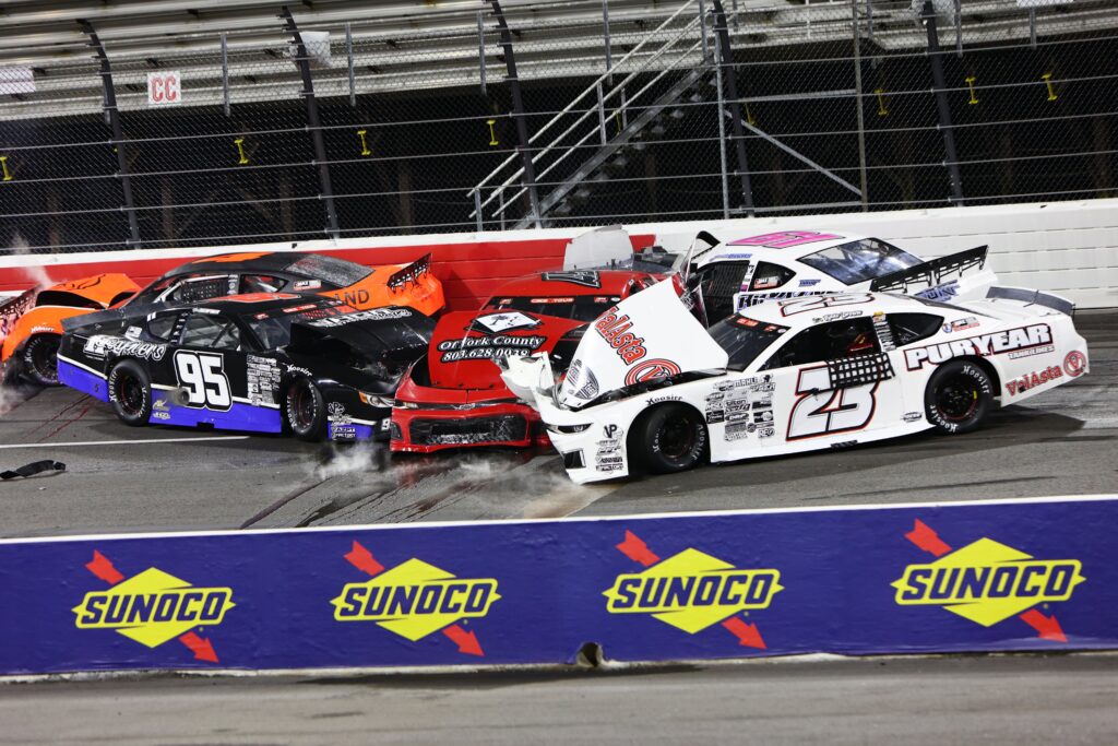 Lapcevich was also involved, again, in the Lap 10 crash when he struggled to get through the gears from the outside of the second row. He didn’t get going into Turn 1 and the stack-up then destroyed the cars driven by Buddy Isles Jr., Kaden Honeycutt, Jacob Heafner, Cameron Bolin, Dylon Wilson, Kade Brown, Connor Hall and Brent Crews.