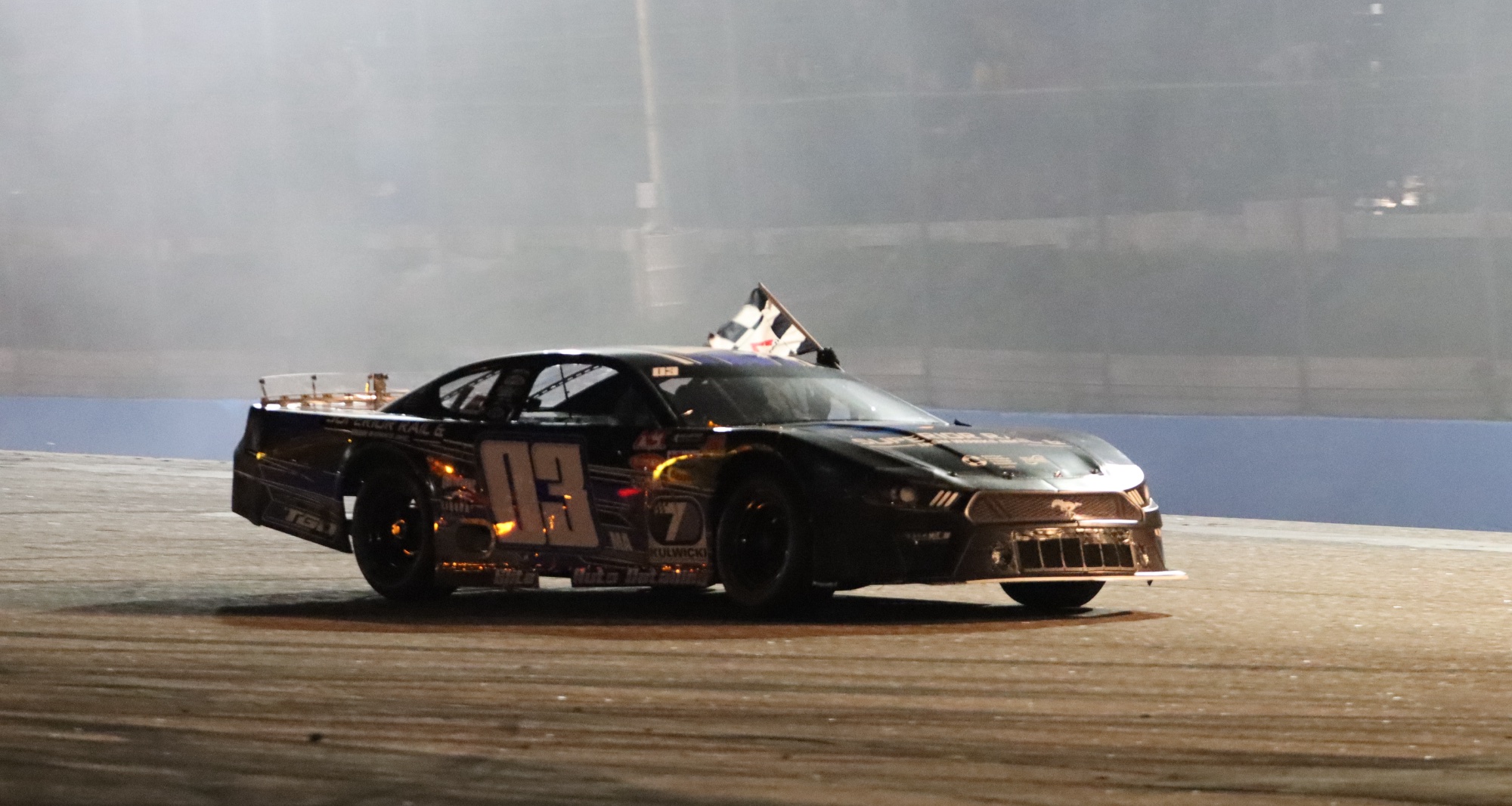 Paying homage to the Polish-American heritage he shares with the late Alan Kulwicki, Gluchacki executed Kulwicki’s signature “Polish victory lap” around Oxford before his own winner’s circle celebration.
