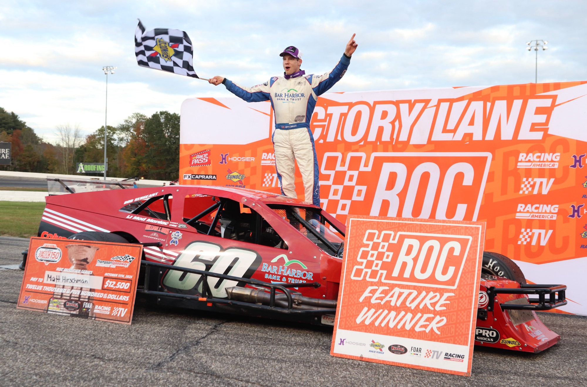 Matt Hirschman dominated the second half of the 150-lap event, winning his tenth Race of Champions and clinching a record eighth RoC Asphalt Modified Series crown.