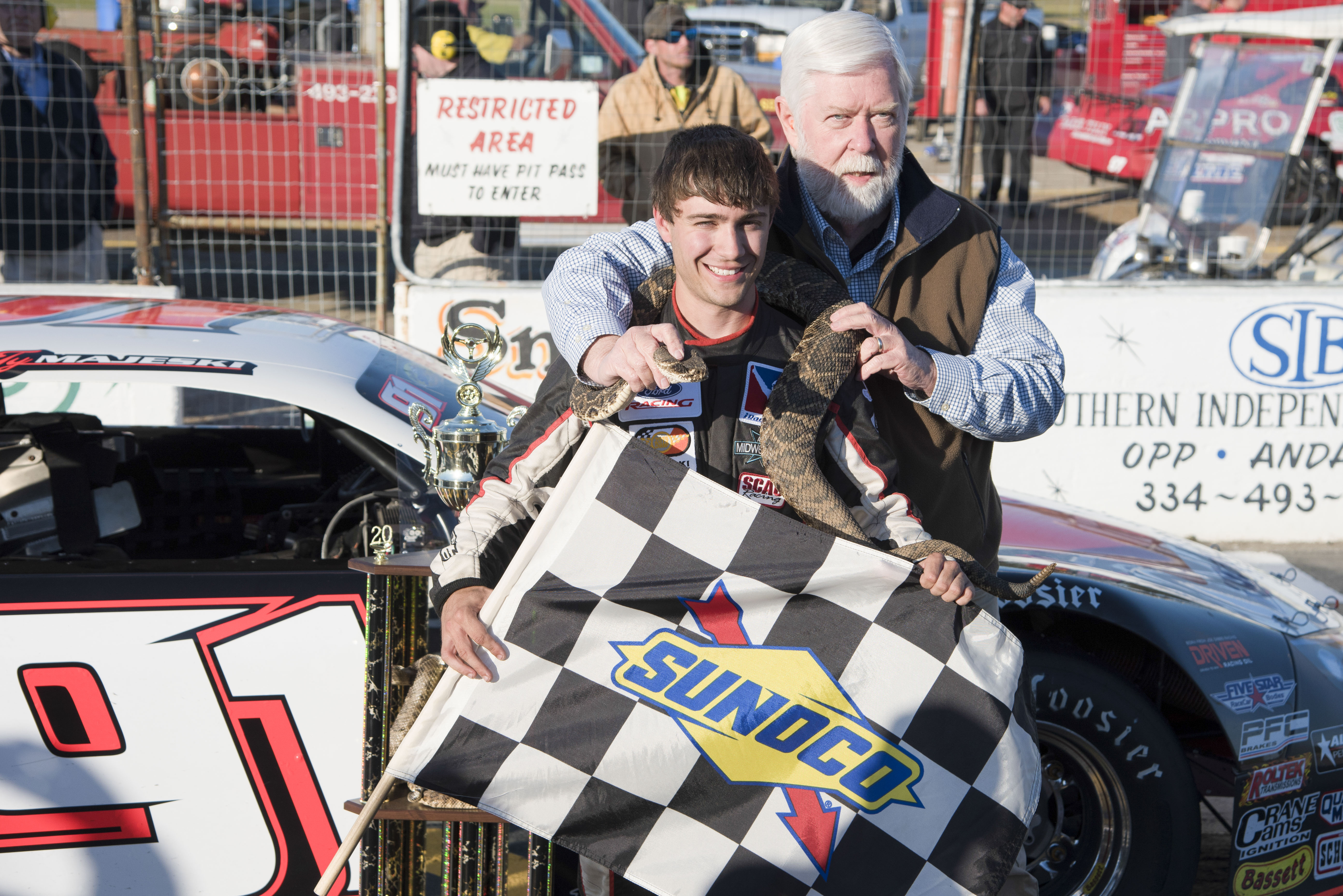 As a result of his performance, the Wisconsin native earned himself a date with an Alabama rattlesnake in victory lane, a long-standing tradition at the prestigious Super Late Model event.