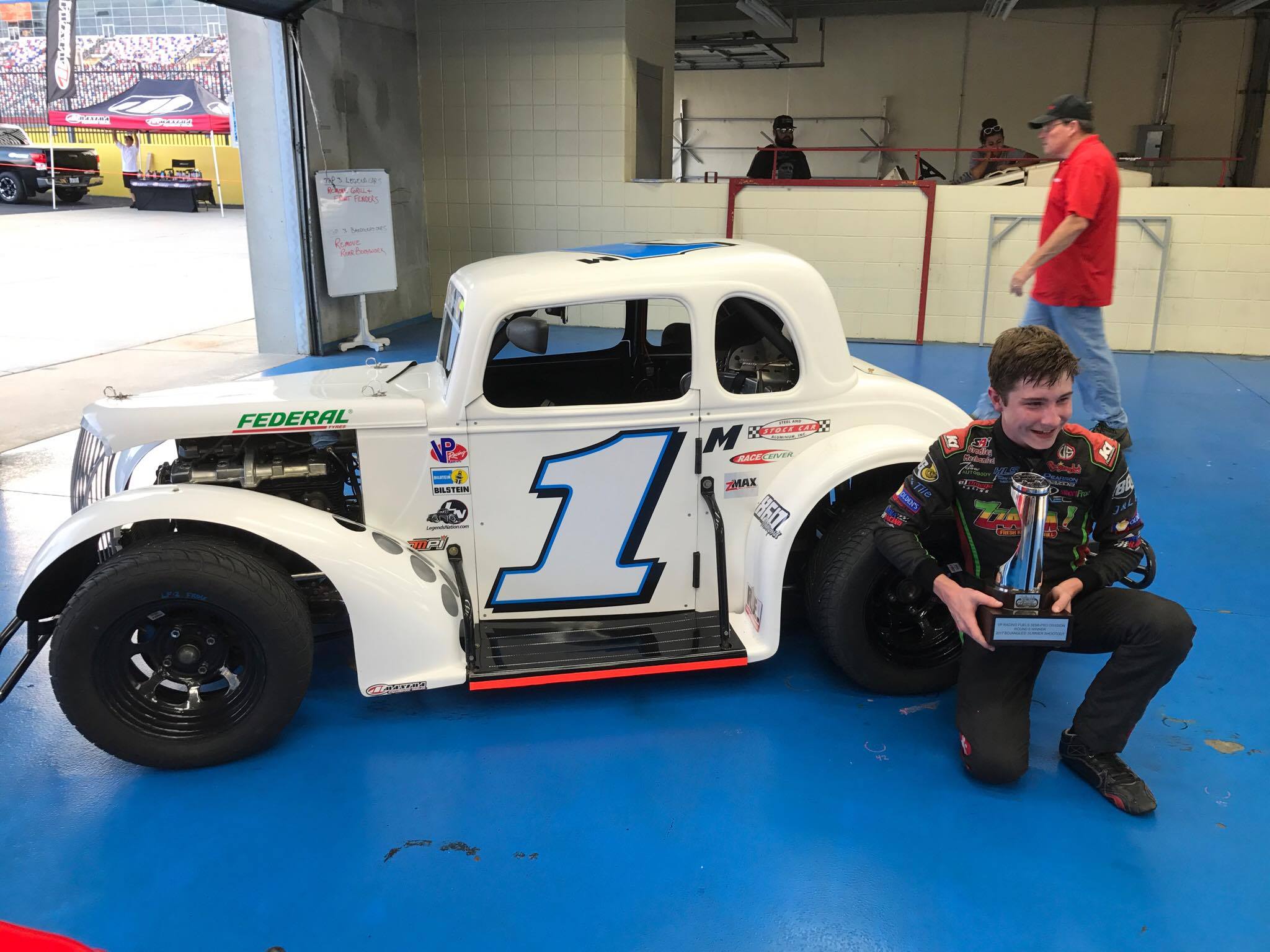 Four laps was all it took for Manes to take the lead and he never looked back. He held off a slew of rivals over the course of several restarts to lead 21 of the 25 laps in his No. 1M Legend. Zach Miller, Zack Wells, and Dustin Rumley were ultimately no match for the raw speed of Manes’ new flat white entry.
