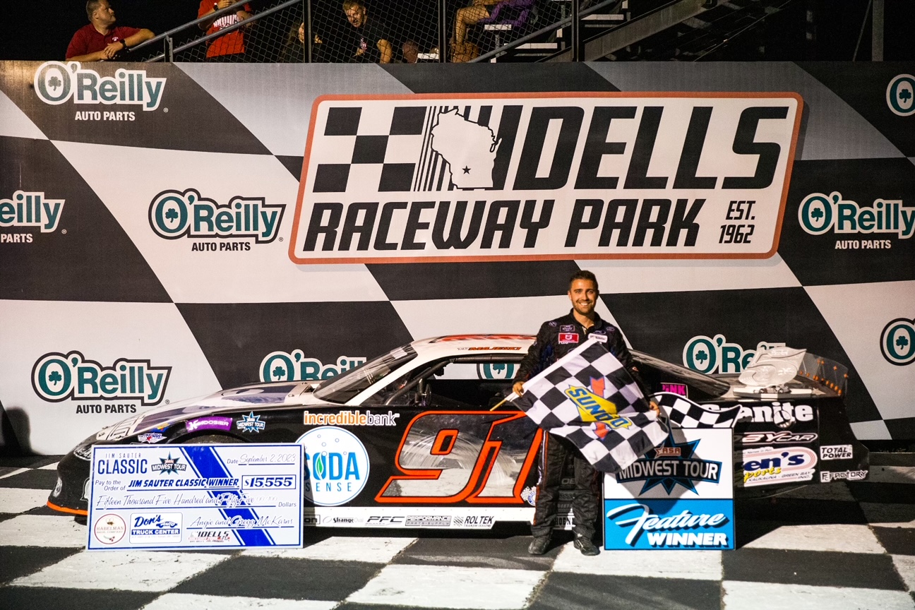 On Saturday night, he collected another $15,555 by winning the Jim Sauter Classic 200 at Dells Raceway Park in Wisconsin Dells, Wisconsin.