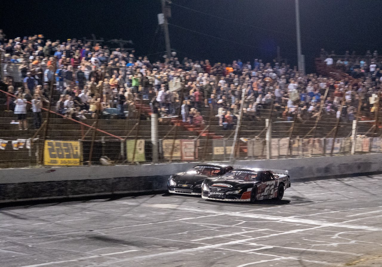 Byron on his older tires retook the lead and was the control car for the last several restarts and was driving away from Ruggiero until three laps to go. That’s when the Donnie Wilson No. 22 came to life on the new tires and reeled the Cup contender down.