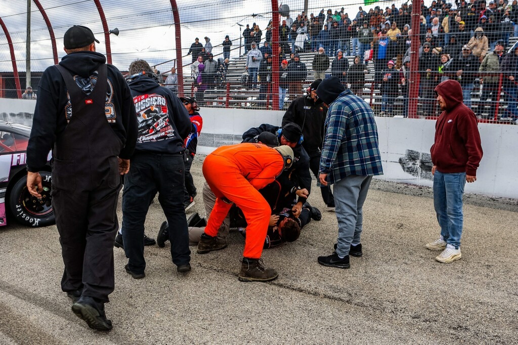 Campi crew members gestured to Ruggiero, their former Pro Late Model driver-client. Jeff Nasse, Stephen’s father, began walking towards where Ruggiero parked adjacent to his son. Ruggiero throttled-up, the kick back, sending the elder Nasse flipping through the air.