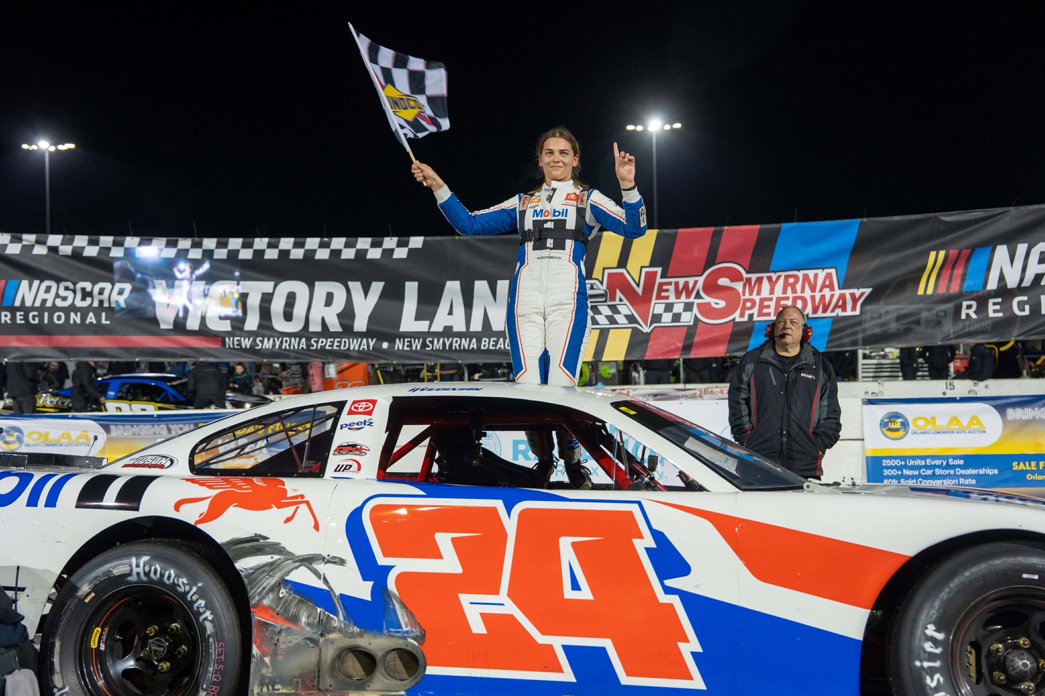 And it wasn’t just that the Clovis, California native won in a Super Late Model but she did it in the World Series of Asphalt at New Smyrna Speedway against a field of cars that is preparing to run the ASA STARS National Tour race on Tuesday.