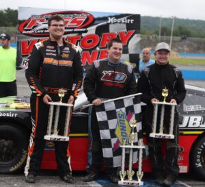 Max Cookson and Austin Teras flank Joey Doiron in victory lane. (STS/Jeff Brown)