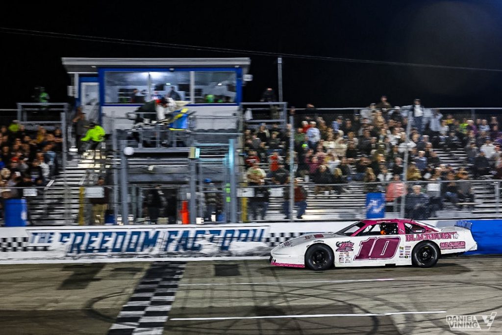 “The car was perfect,” Gorham told Short Track Scene after the race. “I can’t thank (crew chief) Mike Garvey enough for giving me a hot rod … Mario Gosselin and you know, my sister-in-law, Michelle Gosselin and all the guys that helped me, Lamar, Vince Jackson, the car was just on the rail when we unloaded.