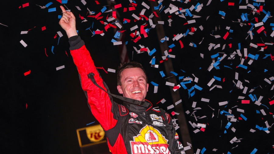 Swanson’s perfect evening began by turning the fastest lap in Dirt Draft Practice, followed by his 43rd career Honest Abe Roofing Fast Qualifying time, which earned him the pole position where he proceeded to lead all 100 laps en route to victory.